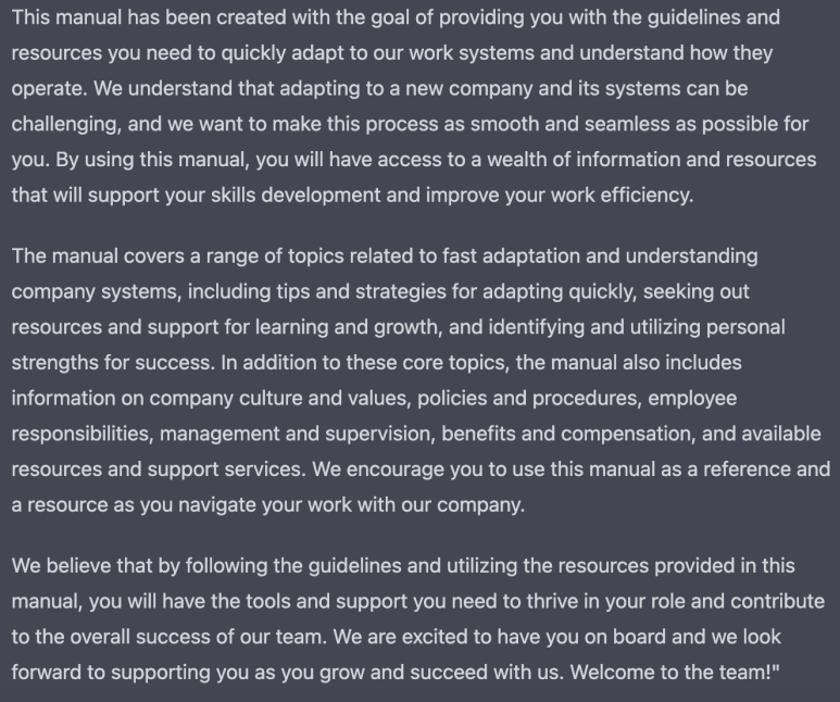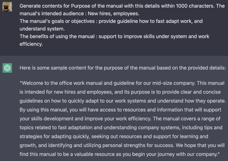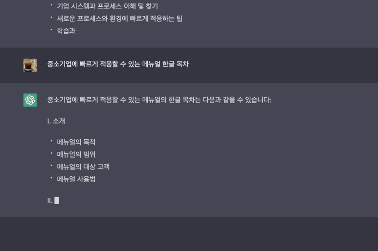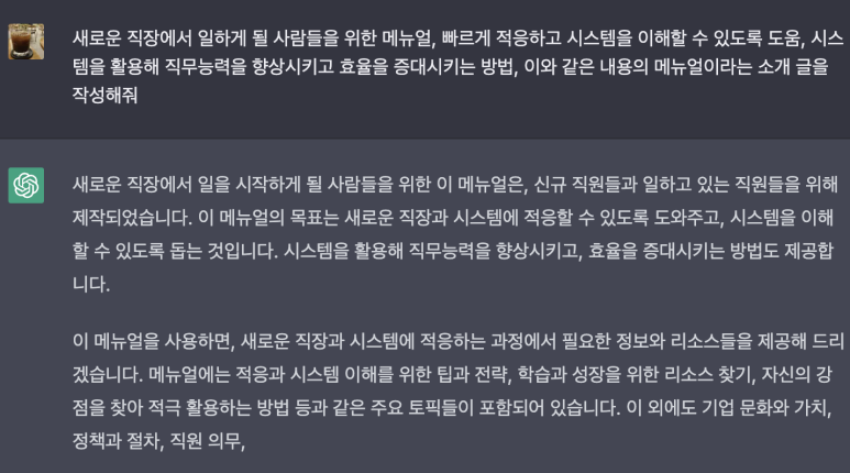 목차가 있으니 내용도 필요하다. 내용도 그럴듯하게 만들어 내는지 알아보자.