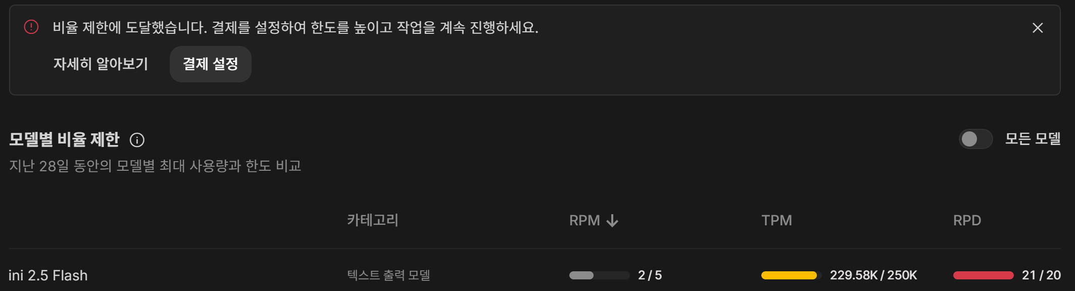 3. 두 번째 좌절: Gemini와 마주한 '제한'의 벽 (RPM과 RPD)